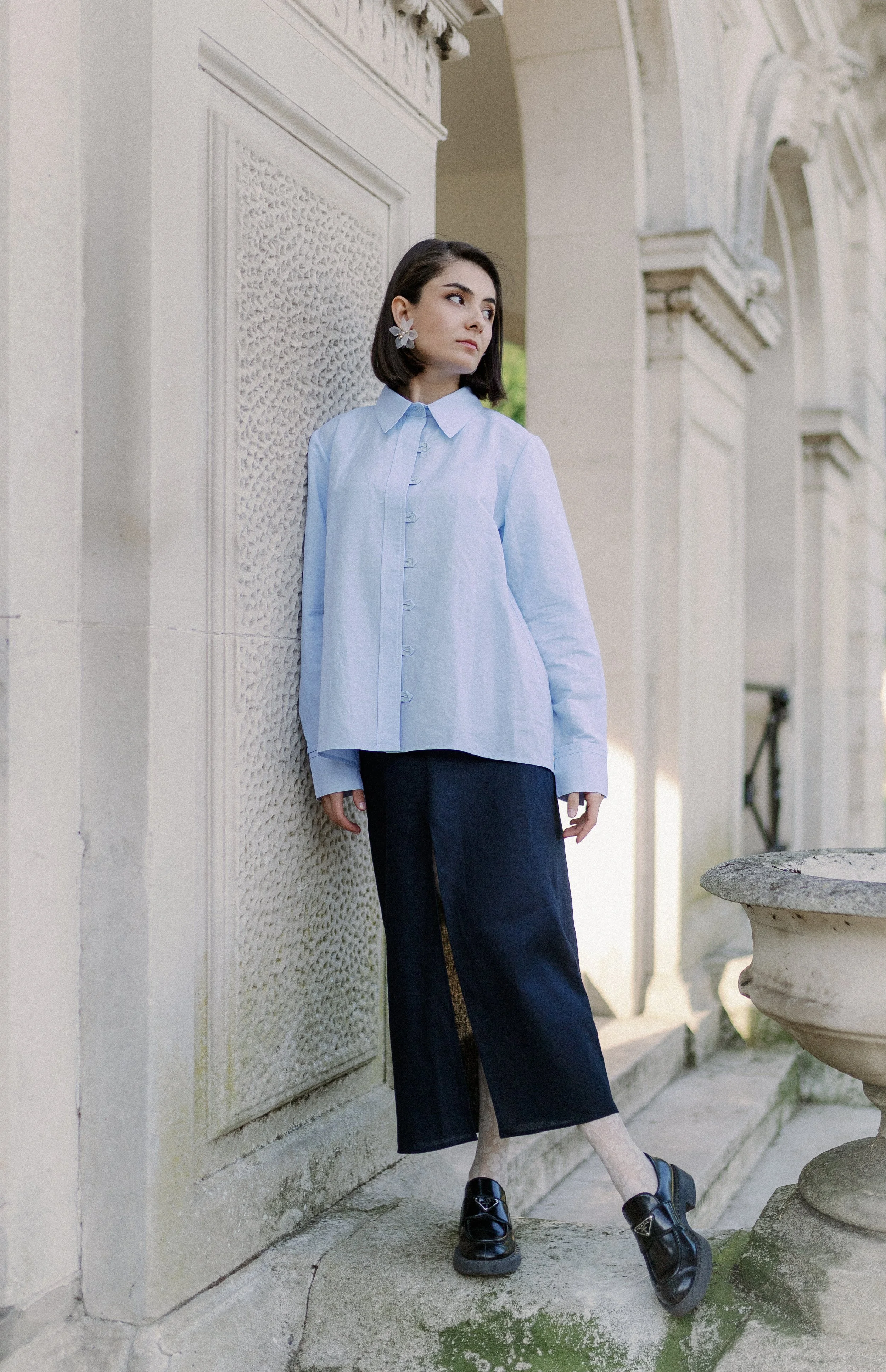 Double-layered or reversible skirt tied with 2 bows in a side. It’s very comfortable in west as it has a ribbon at the back of the waistband of the skirt.